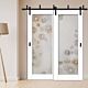 High-quality, 2 leaf, bypassing sliding barn door with glass panel insert and frosted design.