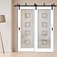High-quality, 2 leaf, bypassing sliding barn door with glass panel insert and frosted design.