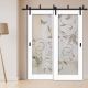 High-quality, 2 leaf, bypassing sliding barn door with glass panel insert and frosted design.