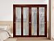 Premium Line Bypass 4 leaf sliding closet door - a handcrafted piece that adds a touch of elegance to any room. Featuring glass inserts with a wave design this wood closet door is sure to elevate your interior decor. You can choose from a variety of wood options to match your style.